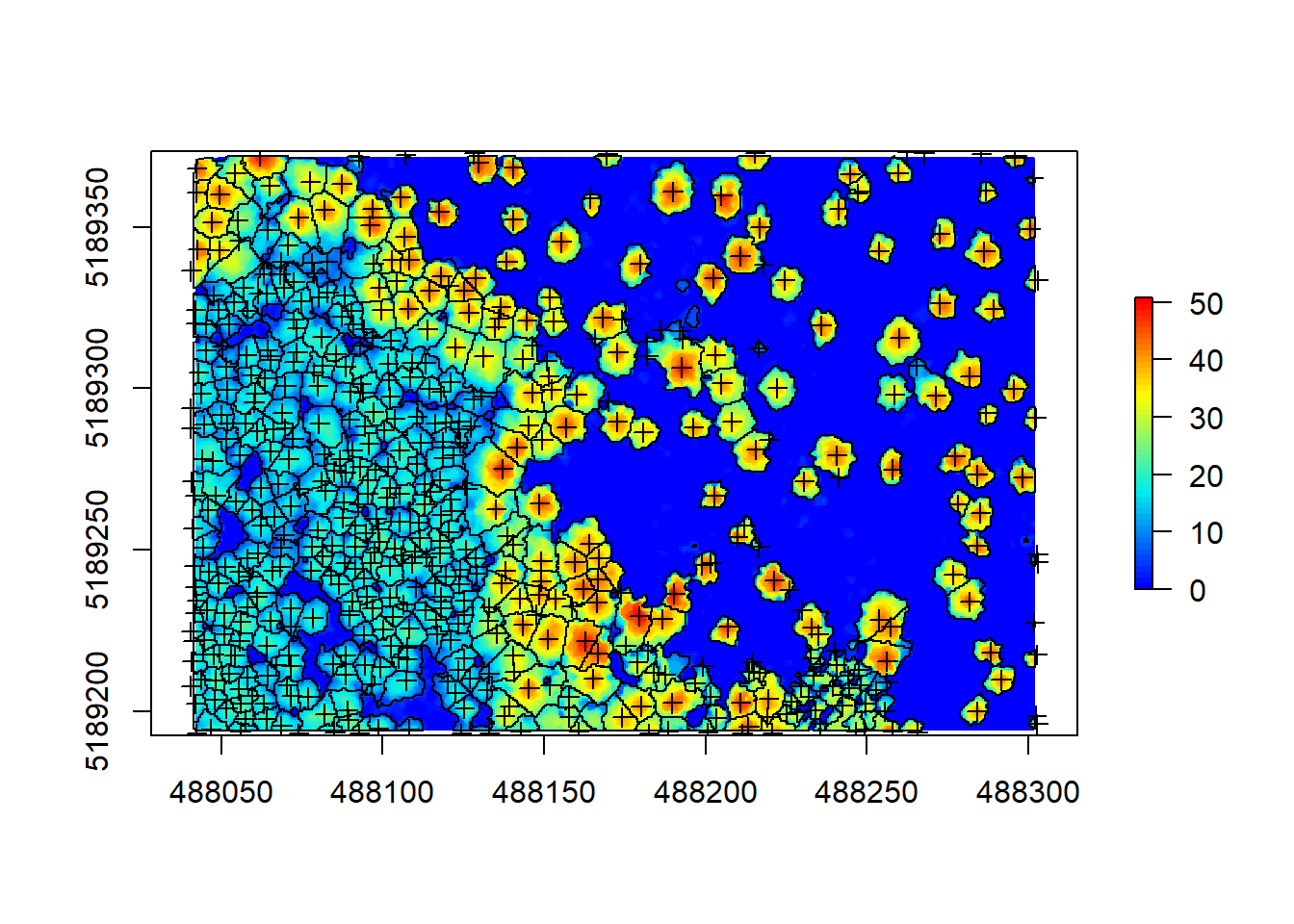 treetops_forest<-tree_detection(forest_norm, lmf(ws = 5, hmin = 10))