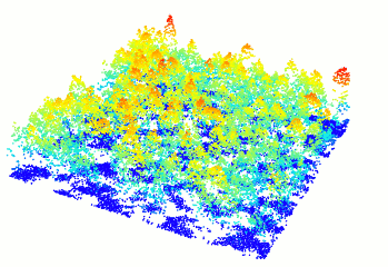plot(raw_forest)You will see that the terrain here is a bit undulated. To normalize ground elevation, we first need detect ground points in this raw data and save it as a new pointcloud:
